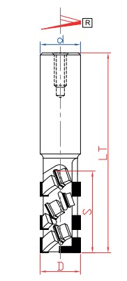 DIA stopková fréza s velkým prostorem pro obvod třísky. 2 zuby na 4 ramenech